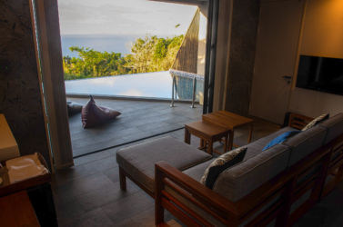 お部屋からインフィニティプール越しに海が見下ろせます。